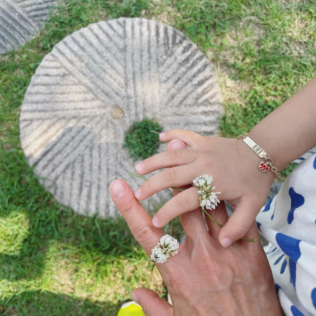 사진 속 한채아와 4세 딸은 커플 꽃반지를 끼고 서로 손을 포개고 있다. 금팔찌에 꽃반지까지 낀 한채아 딸의 앙증맞고 귀여운 손이 보는 이들의 미소를 자아낸다.