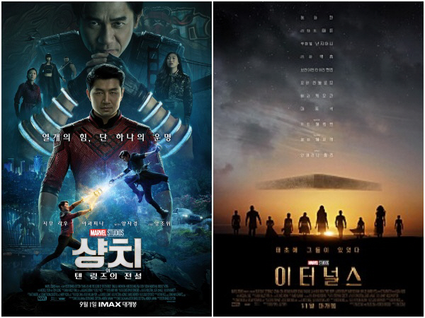 [스포츠조선 이승미 기자]2021년 최고 흥행 스코어를 기록한 '블랙 위도우'의 뒤를 이어 올 하반기, 마블 유니버스의 확장된 세계관을 이끌어갈 두 편의 화제작이 관객들의 뜨거운 관심과 기대를 모으고 있다. 9월 1일 전 세계 최초 개봉을 확정한 '샹치와 텐 링즈의 전설'과 11월 개봉을 앞둔 '이터널스'가 그 주인공이다.