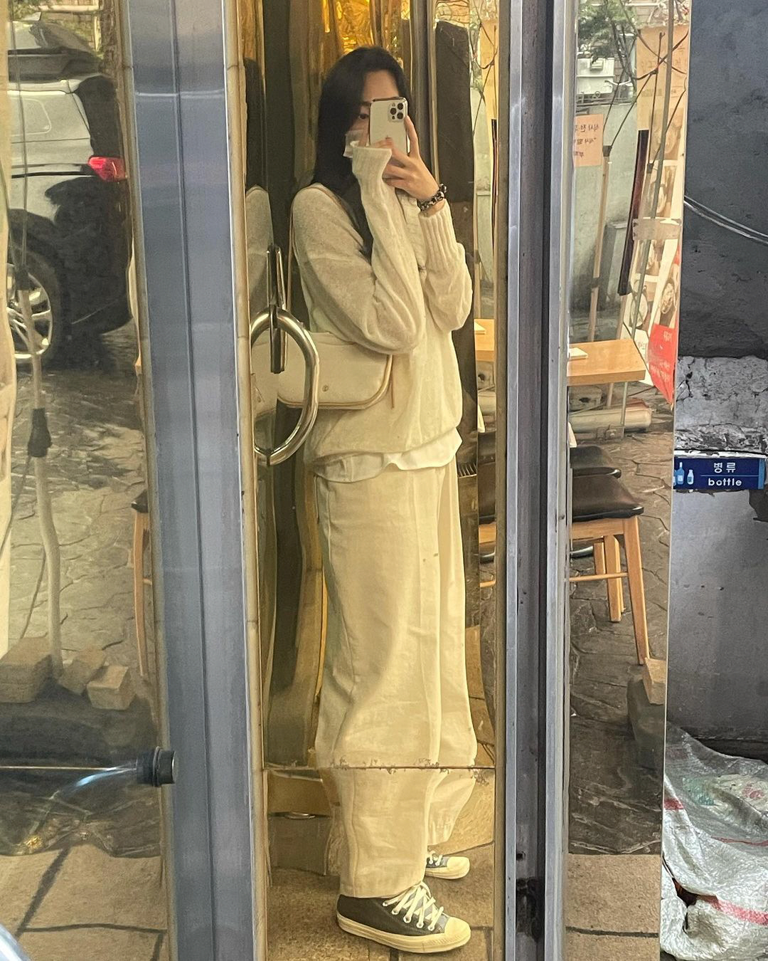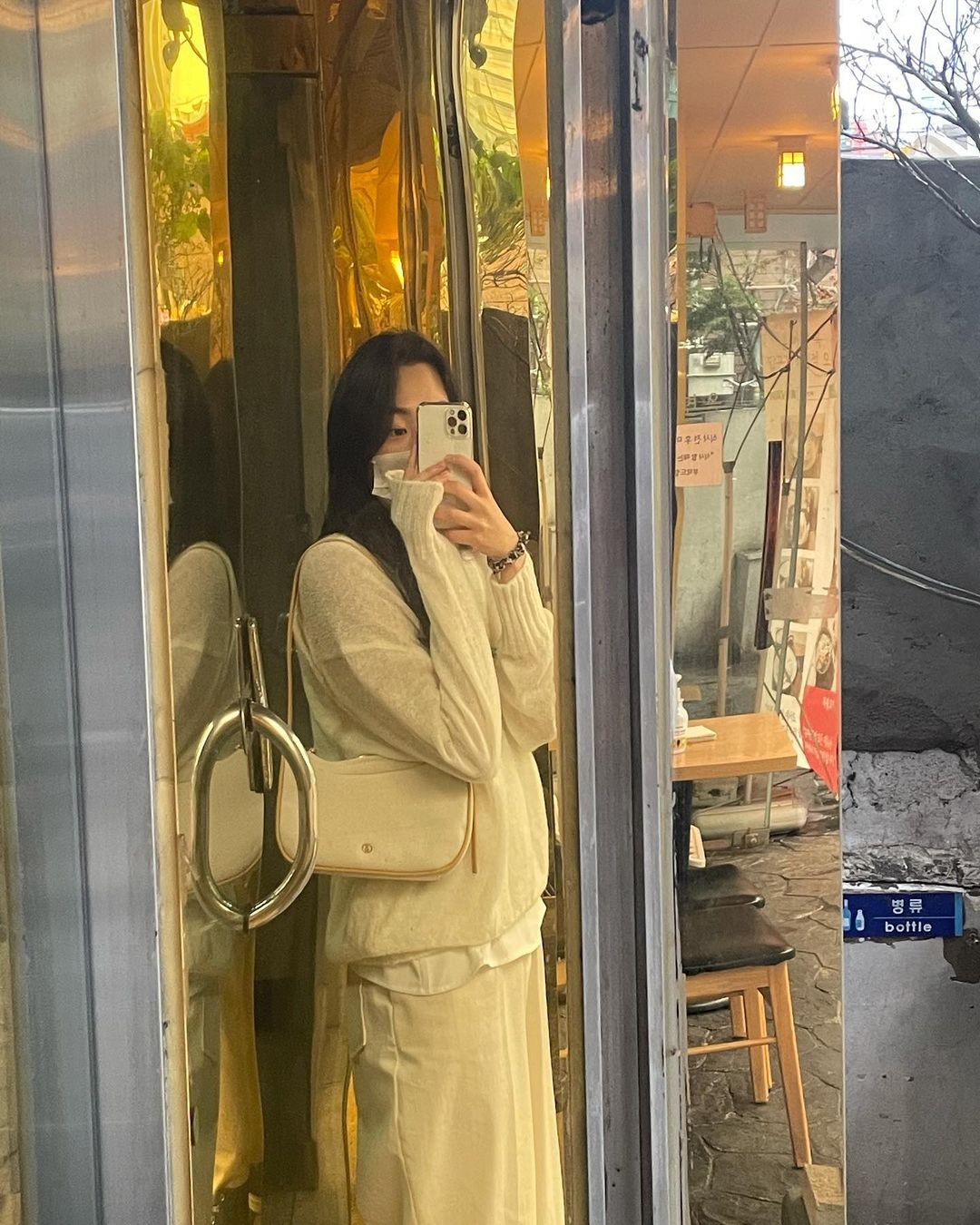 이때 강미나는 다리가 길어보이게 사진을 촬영한 뒤, "키 커지는 법. 거울의 연결선을 이용한다"고 적어 웃음을 유발했다.