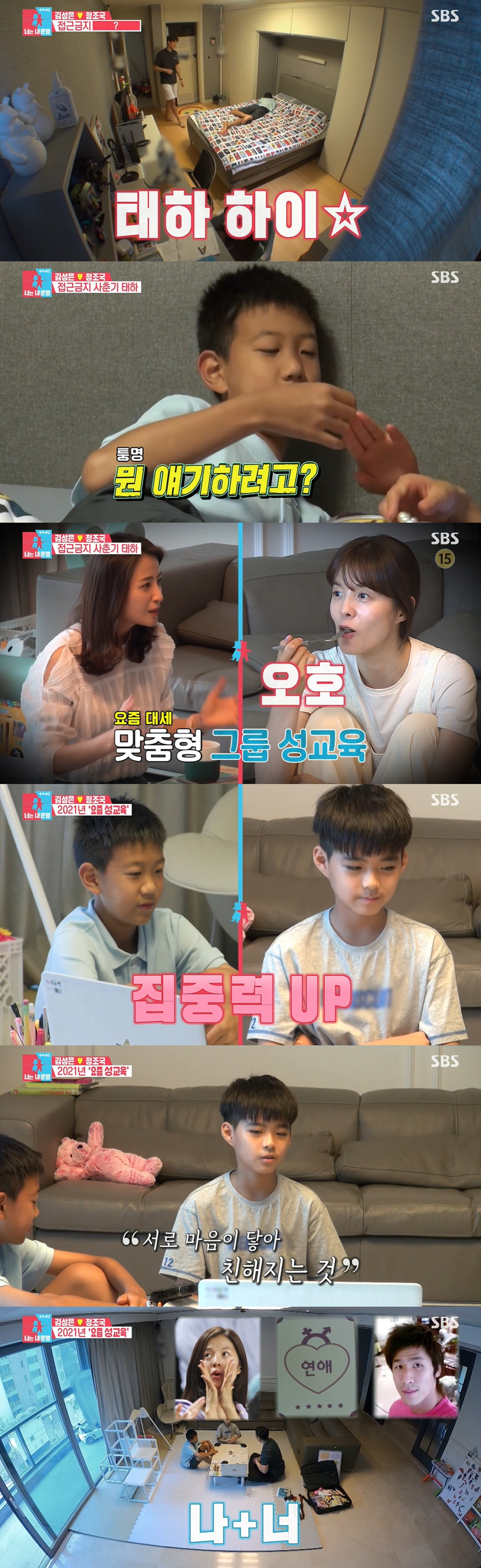 그러자 강사는 "자연스럽고 보기 좋은 스킨십인 거 같아서 태하도 그렇게 받아 들이지 않을까 싶다"면서도 "다만 좀 크면 엄마 아빠가 노골적으로 하면 '들어가서 해'라고 표현을 할거다"면서 이유 알리되 거부 반응을 배려해 장소를 바꿔야 한다고 설명했다.