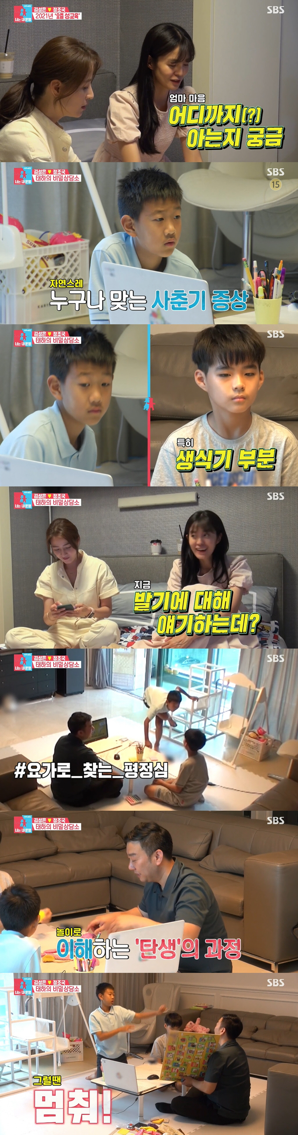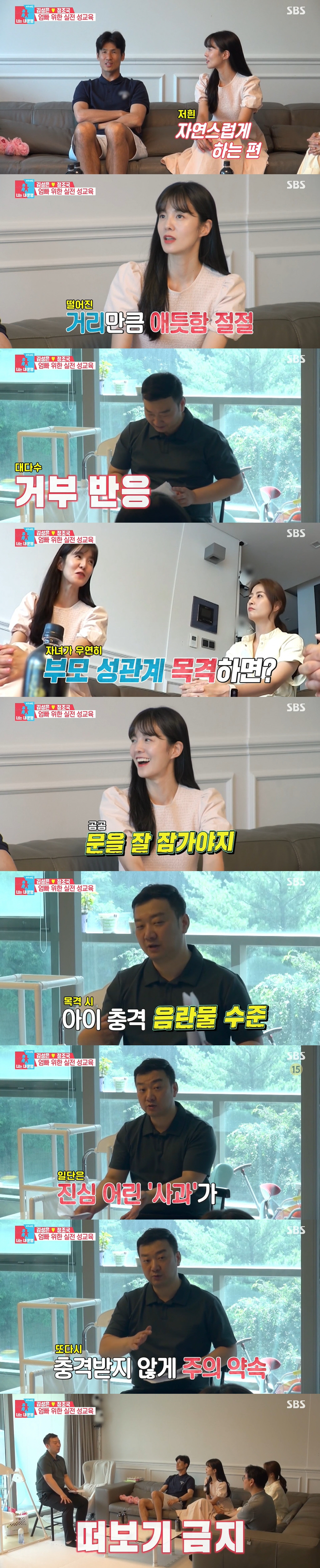 김성은은 "아이가 음란물을 보고 있는데 걸리면 어떻게 해야 하나"고 물었고, 강사는 "그 상황을 개입하지 말아라. 대신 대화를 시작할 때 부모님이 봤다는 건 이야기를 하고 시작해야 한다"고 했다.