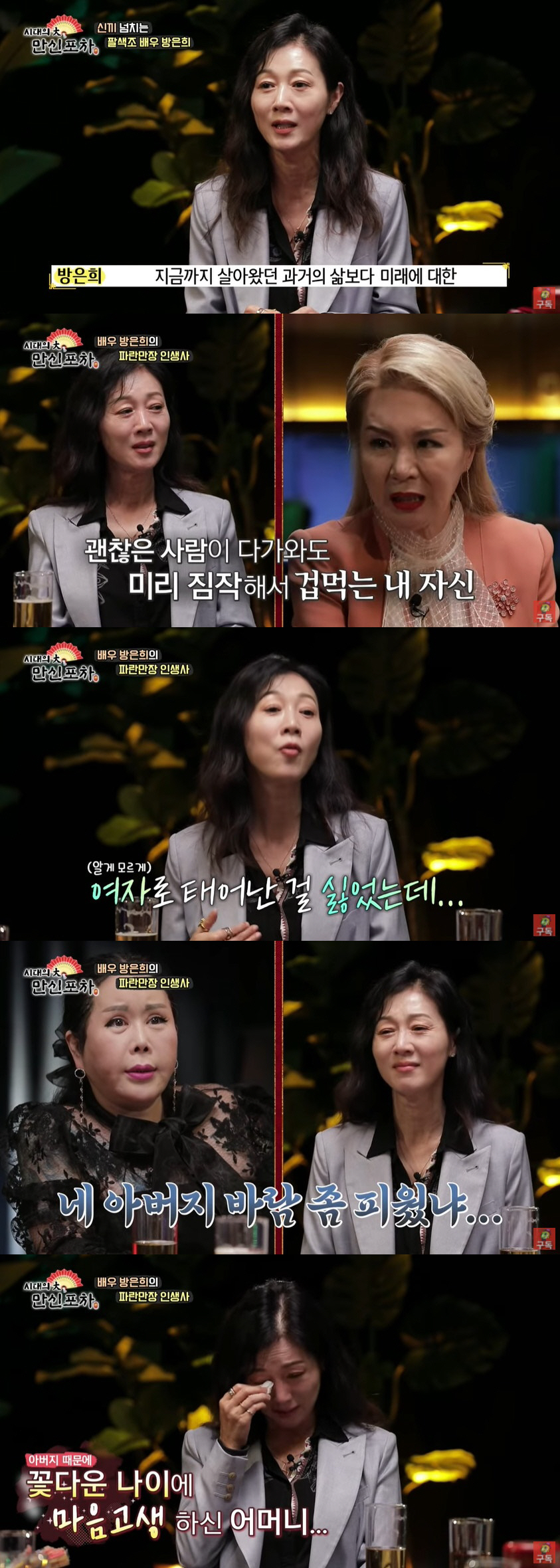 또 다른 만신은 방은희의 부모님을 언급하며 "네 아버지 바람 좀 피웠냐. 속 얼마나 썩였냐"고 말했다. 이에 방은희는 "아버지가 너무 밉다"며 "우리 엄마가 날 16살에 낳았다. 정말 예쁘게 생겼는데 아버지가 정말 못됐다"고 털어놓으며 오열했다.