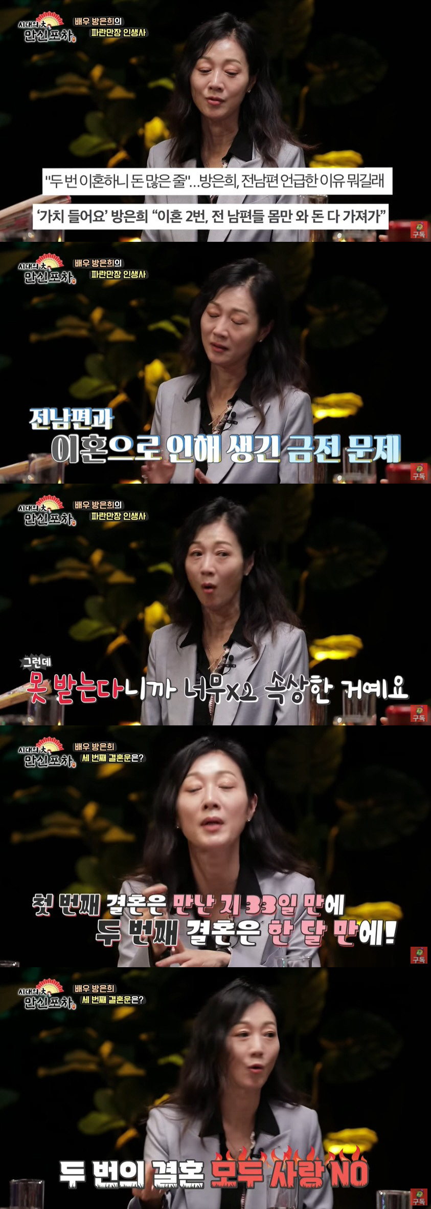 한편, 배우 방은희는 2000년 성우 성완경과 결혼했으나 2003년 이혼했다. 이후 2010년 재혼했으나 9년 만에 두 번째 파경을 맞았다.