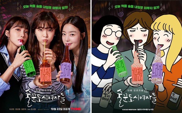 다음달 22일 첫 공개 예정인 티빙 오리지널 '술꾼도시여자들'은 미깡 작가의 다음 웹툰 '술꾼도시처녀들'을 원작으로, 하루 끝의 술 한잔이 인생의 신념인 세 여자의 일상을 그린 본격 기승전술 드라마다.