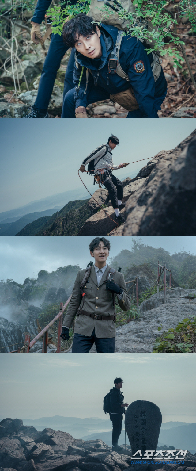 특히 깎아지른 절벽에서 로프를 타고 하강하는 아찔한 순간은 넋을 놓게 만든다. 한눈에 내려다보이는 푸른 능선이 감탄을 자아내면서도 그만큼 높은 고도가 아슬아슬한 긴장감을 형성하는 것. 오직 허리에 찬 등반 하네스와 연결한 로프에만 의지한 강현조가 과연 무엇을 찾기 위해 위험천만한 암벽 하강에 나섰을지 그의 다음 발이 디딜 곳을 궁금케 한다. 이어 해발고도 1,915m의 지리산 정상에 오른 장면 또한 절경을 선사한다. 그 어떤 드라마에서도 담아낸 적 없는 지리산의 광활한 비경들을 비롯해 이곳에서 강현조가 마주할 미스터리, 그가 숨기고 있는 의미심장한 비밀의 정체까지 한순간도 놓칠 수 없는 다채로운 이야기들을 예고하고 있다.