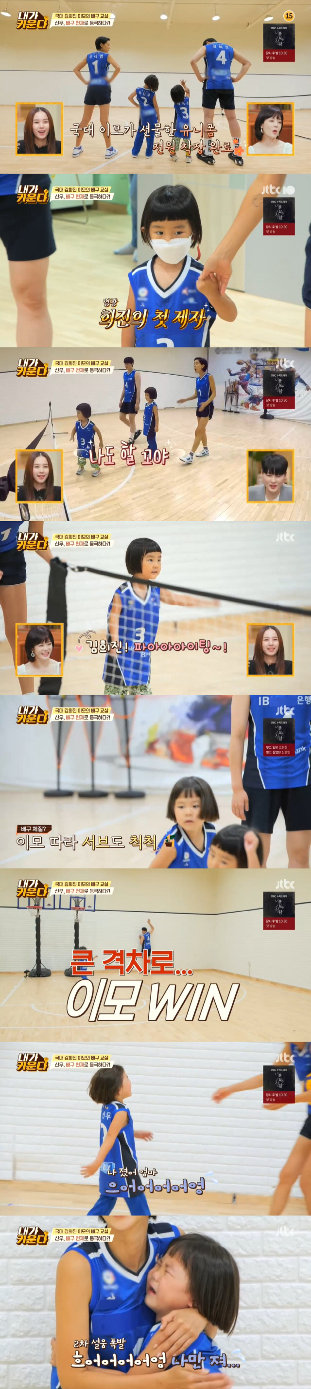 김희진은 "신우, 이준이가 저의 첫 번째 배구 제자들"이라며 수업을 시작했다. 신우는 서브도 척척, 페트병 맞히기도 성공하는 등 김희진을 뿌듯하게 했다.그때 김희진은 신우와 몸풀기 달리기 시합을 진행, 큰 격차로 김희진이 승리하자 신우는 울음을 터트려 웃음을 안겼다. 2라운드는 김희진과 이준이의 달리기 대결. 승자는 이준이였다. 이에 신우는 "나만 져"라며 또 한번 눈물을 터트려 김희진을 당황하게 했다.