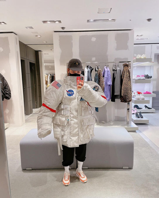 사진 속 송가인은 우주복 디자인의 재킷을 입고 앙증맞은 매력을 발산하고 있다. 송가인의 아담한 자태와 물오른 미모가 시선을 사로잡는다.