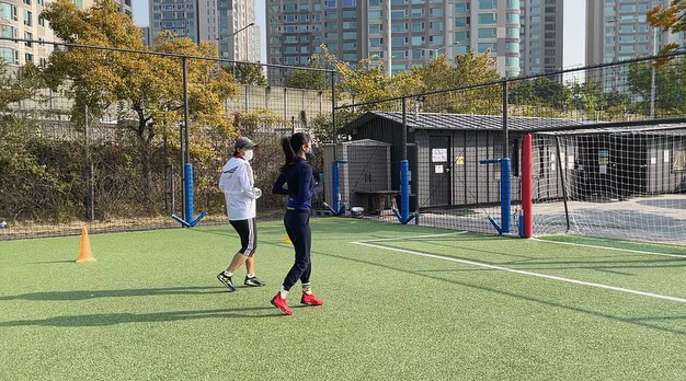 한채아는 "부산촬영 가기 전. 애정하는 노강숙코치님이랑"라면서 촬영으로 바쁜 날들을 보내고 있는 상황에서도 축구 연습을 빼놓지 않은 열정이 인상적이다.