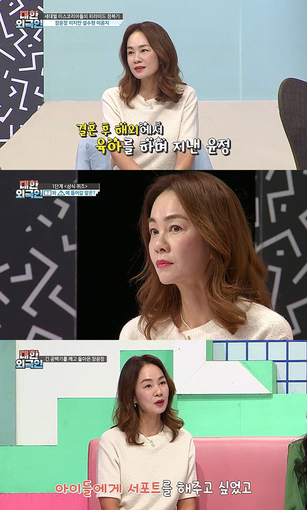 장윤정은 1987년 미스코리아 진 출신으로 한국인 최초 미스 유니버스 2등을 수상했다. 이후 90년대 방송계를 주름잡으며 MC로 활약했지만 돌연 미국행을 선택해 연예계 공백기를 가졌는데, MC김용만이 돌연 활동을 중단하게 된 사연을 묻자 장윤정은 "어릴 때 미스코리아가 됐는데 좋은 점도 많았지만, 학교생활을 못 했던 게 아쉬웠다"고 전했다. 이어 "아이들만큼은 학교생활을 잘할 수 있게끔 서포트를 해주고 싶었고, 잠깐 쉬어가고 싶기도 했다"며 미국행을 선택한 이유를 전했다.