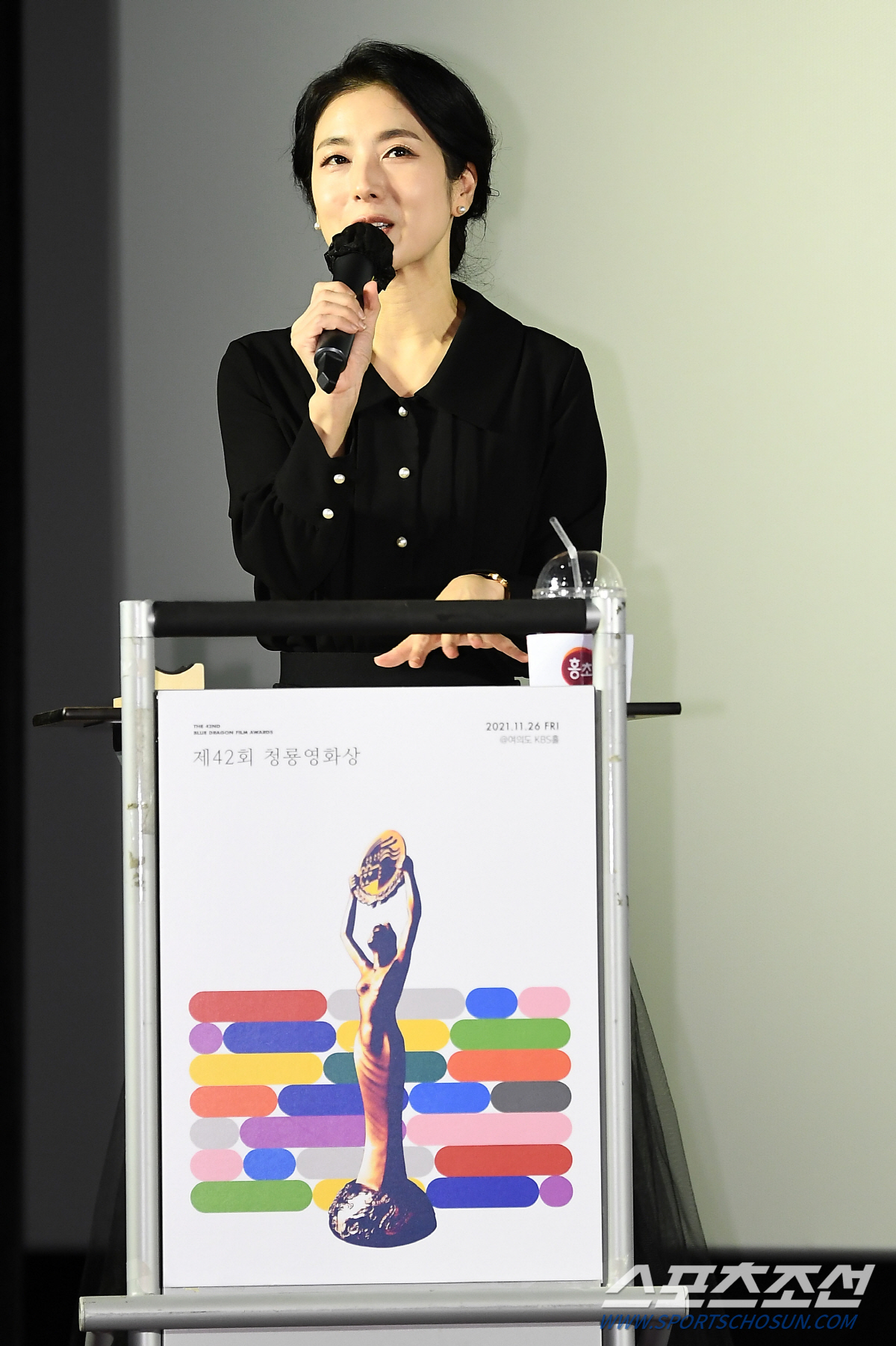 제42회 청룡영화상 핸드프린팅 행사가 12일 서울 여의도CGV에서 열렸다. 사회를 맡은 영화평론가 윤성은이 인사말을 하고 있다. 여의도=박재만 기자 pjm@sportschosun.com /2021.11.12/