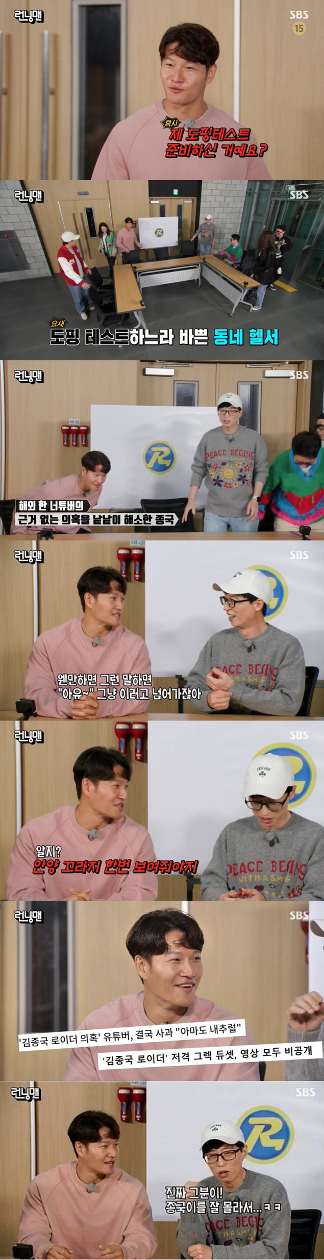 이날 김종국은 여느 때와는 달리 정돈된 회의실 분위기에 "제 도핑 테스트 준비하냐"고 너스레를 떨었다.