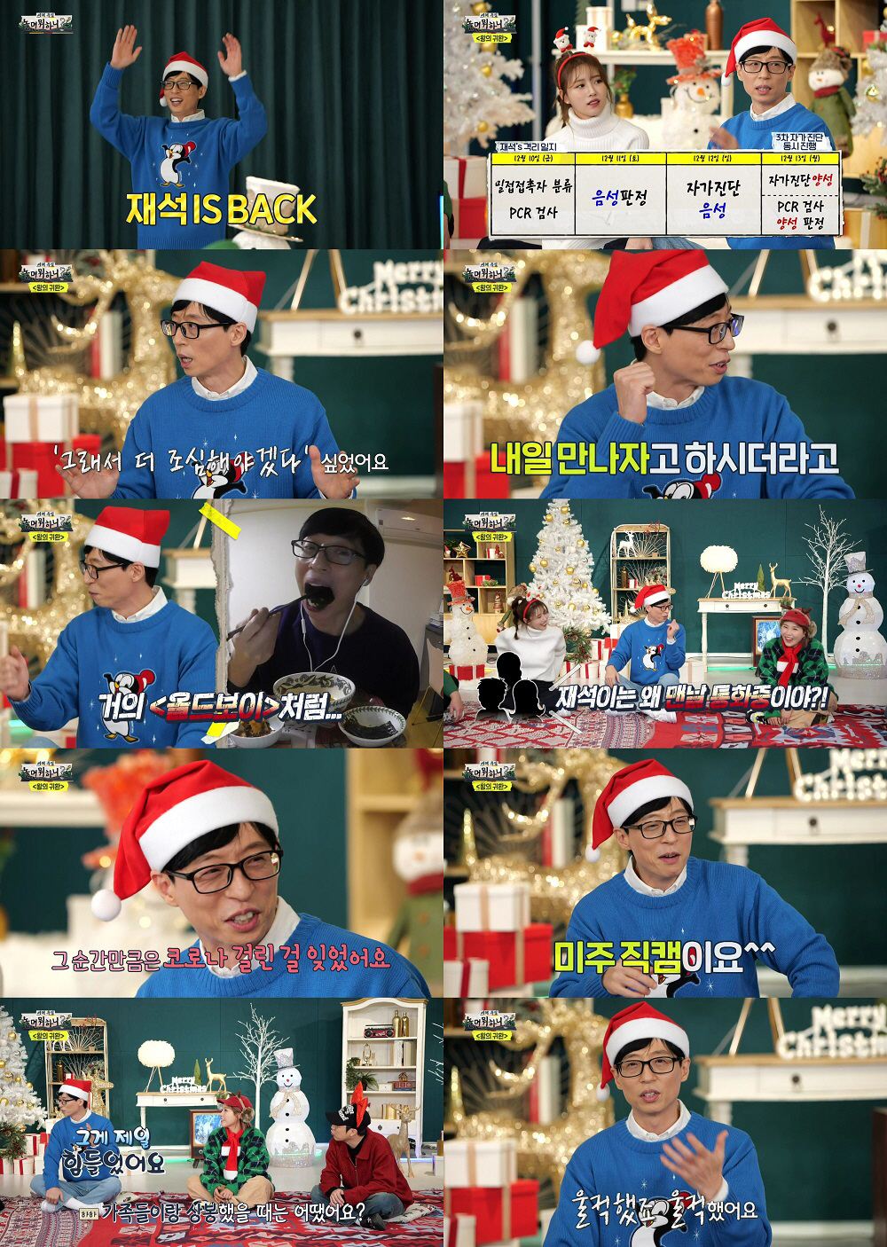 [스포츠조선 이승미 기자]유재석이 코로나19에서 완치돼 건강한 모습으로 '놀면 뭐하니?'에 귀환해 자가격리 비화를 대 방출했다.