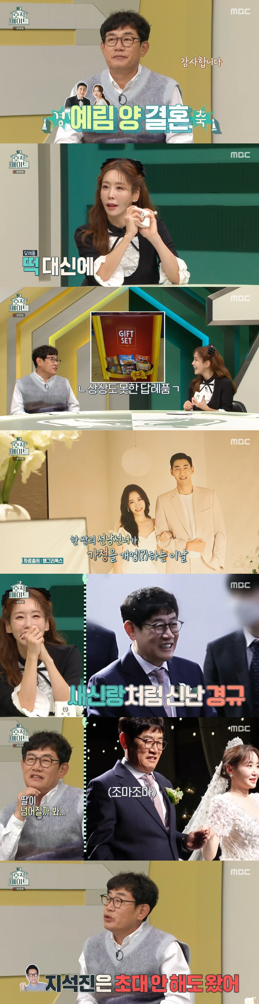 이와 함께 결혼식 현장 영상이 공개됐다. 김정은은 그 어느 때보다 환한 미소를 지으며 하객을 맞는 이경규를 보며 "진짜 활짝 웃으신다"며 웃었다. 이경규가 딸 이예림의 손을 꼭 잡고 함께 신부 입장하는 모습도 공개됐다. 이에 딘딘은 "손잡고 걸어갈 때 기분 어떠셨냐"고 물었고, 이경규는 "딸 넘어질까 봐"라며 민망해했다. 또한 결혼식장에서 만세 삼창을 외치는 이경규의 모습이 나와 웃음을 자아냈다.