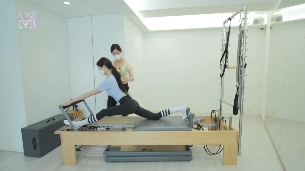 보통 웬만한 사람은 필라테스 기구 위에서 길이를 자신에 맞게 조금씩 앞으로 조정하게 마련인데, 장원영은 다리를 쭉 뻗으니 거의 기구 끝에서 끝까지 딱 닿는다. 위로 다리를 할 때는 천장에 닿을 정도.