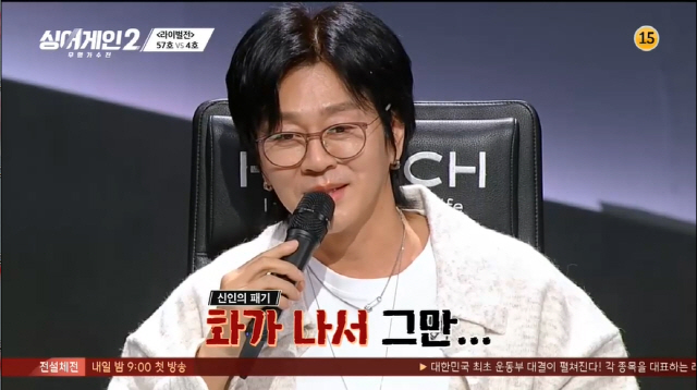 윤종신은 선택의 순간, "여기는 누가 누르는지 다 보인다. 밑에서 쪼이는 맛이 없다"며 머쓱해 했다. 팽팽한 두 사람의 무대에 심사위원들은 신중하게 다음 라운드가 더 기대되는 가수로 57호를 선택했다.