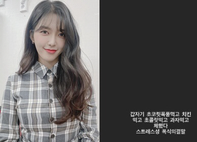 이 게시물은 새벽 2시에 게재된 것으로 팬들의 걱정을 사기 충분했다. 찬미는 폭식의 이유가 스트레스 탓이라고 덧붙여 눈길을 모았다.