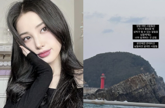 유깻잎은 10일 자신의 SNS 스토리에 "정말 어떤 사람들은 자기가 들었을 때 상처가 될 수 있는 말들을 남들에게는 너무 쉽게하는 것 같음. 본인에겐 관대하고 남들에겐 엄격한 사람들"이라며 사진을 게재했다.