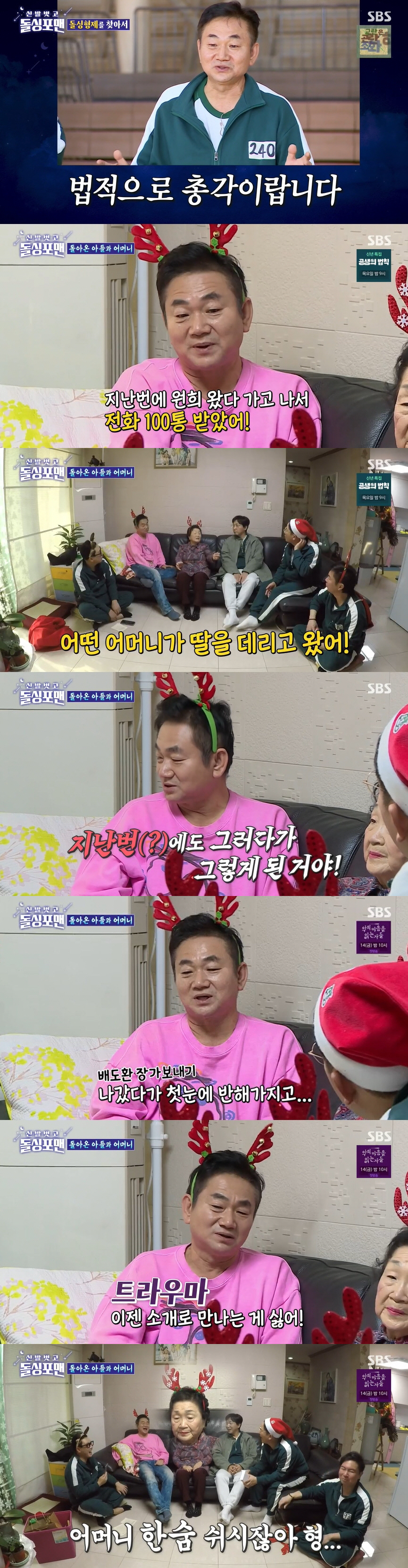 또 배도환 어머니는 아들의 재혼에 대해 "올해 안에 재혼할 수 있을 거 같다. 내 예감이 그렇다. 기도를 해봤는데 응답이 왔다"며 자신했다.