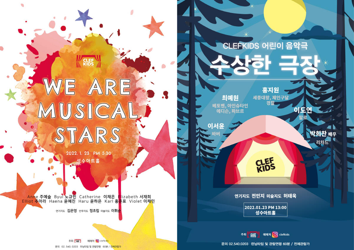 [스포츠조선 고재완 기자] 트렌디한 아동 예술 프로그램으로 주목 받고 있는 키즈아트뮤지컬 '클레프키즈'가 오는 23일 성수아트홀에서 공연을 올린다.