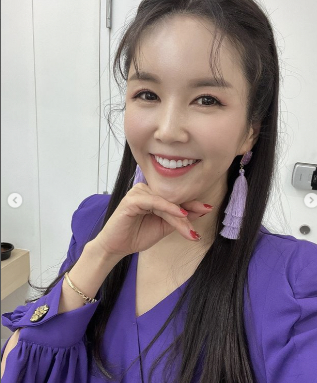 사진에는 촬영을 위해 머리부터 발끝까지 풀 메이크업과 의상을 차려입은 장영란의 모습이 담겼다.