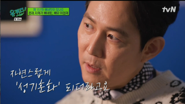 이정재는 "내 나이 60세, 70세가 되어도 이 정도 꽉 끼는 가죽 바지가 맞았으면 좋겠다"라고 했다. 또 '현재 재력 조세호 vs 456억 빚을 진 이정재'에 대해서는 '456억 빚더미 이정재'를 골랐다. 이정재는 "어차피 요즘은 빚도 자산이다. 능력이라 본다"라고 말해 웃음을 자아냈다.이정재는 가족들에 대해 "그래도 부모님이 자식의 영화나 드라마가 성공하면 기뻐하신다. 아들이 이런 인터뷰, TV 쇼에 나온 걸 매일 돌려보시는 게 낙이시다. 일을 오래 하고 싶은 이유도 그거다"라고 했다.