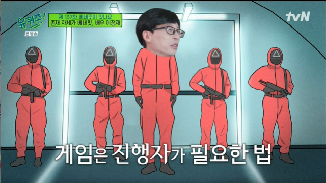 이정재는 "저는 예능프로그램을 많이 본다. 유재석이 '싹쓰리'를 만드는 과정을 보고 재미와 활동이 넘치는 프로그램에서 감동까지 줄 수 있나 싶었다. 운동하는 곳에서 만나서 '너무 좋아'라고 했다"라며 유재석과 친분을 자랑했다.
