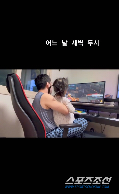 동영상은 새벽 2시에 아빠와 컴퓨터 화면을 보면서 놀고 있는 딸의 모습을 담고 있다.