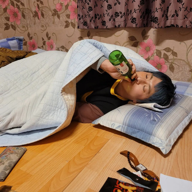 사진 속 기안84는 따뜻한 방바닥에 누워 휴식을 취하고 있는 모습이다. 이때 이불을 덮고 한 손에는 소주병을 들고 있는 기안84. 이어 누운 채로 소주를 마시고 있는 모습이 놀라움을 안긴다. 이후 만족한 듯 이불을 꼭 덮은 채 환하게 웃고 있는 기안84의 모습은 보는 이들까지 웃게 만들었다.