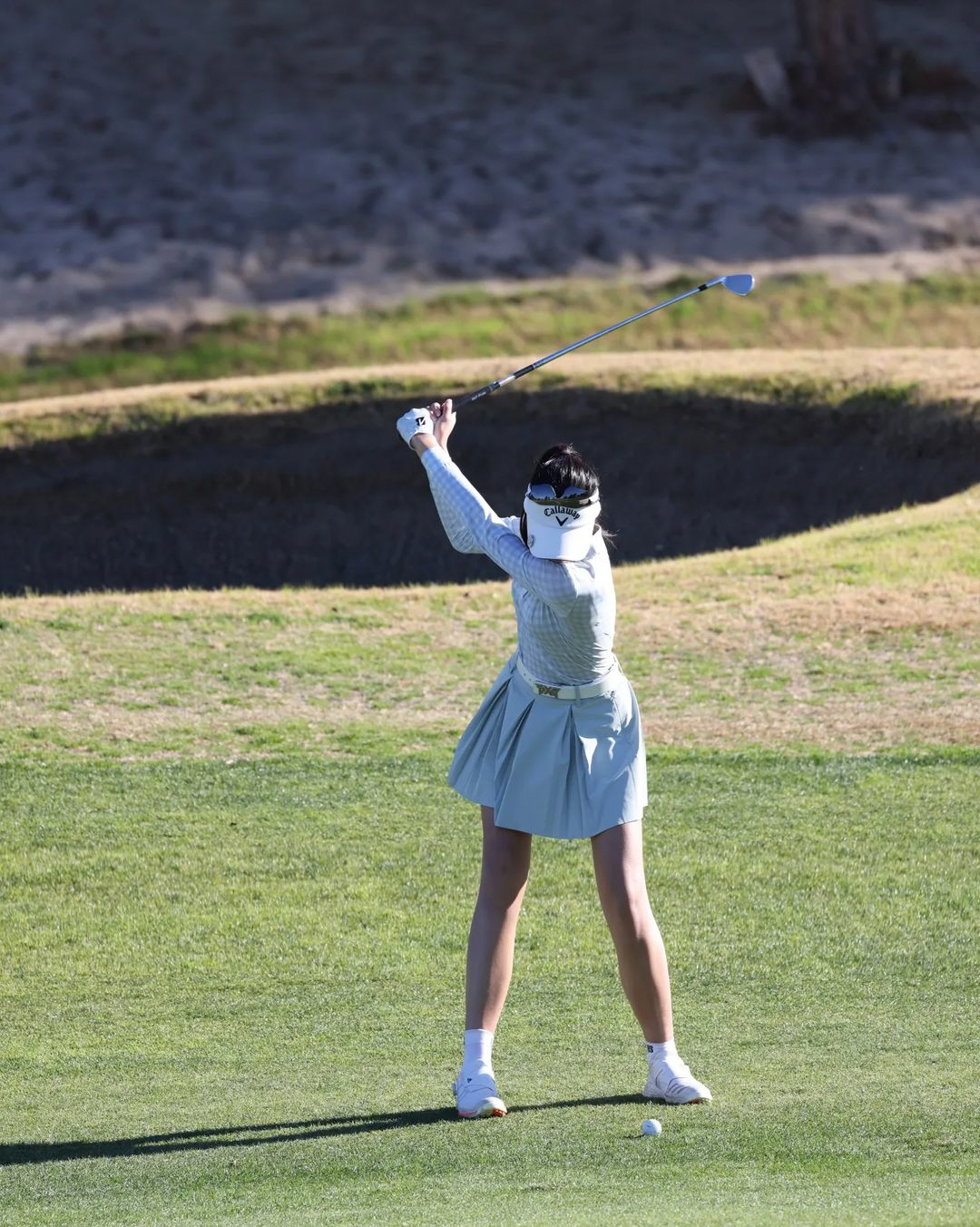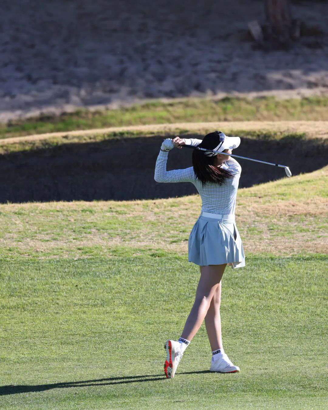 사진 속에는 미국의 한 골프장에서 훈련 중인 송지아의 모습. 골프 스윙을 하는 송지아는 완벽한 비율을 자랑하고 있다.