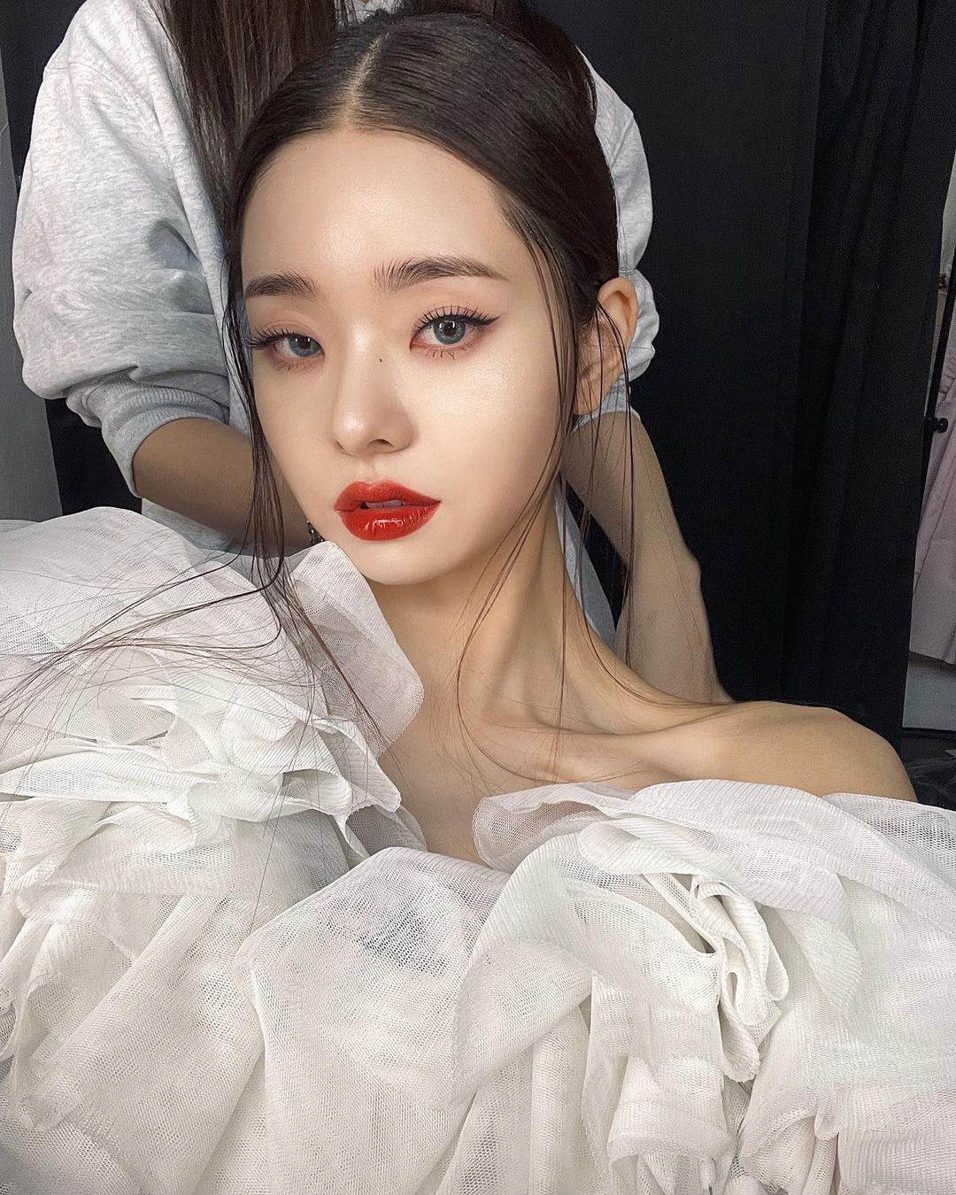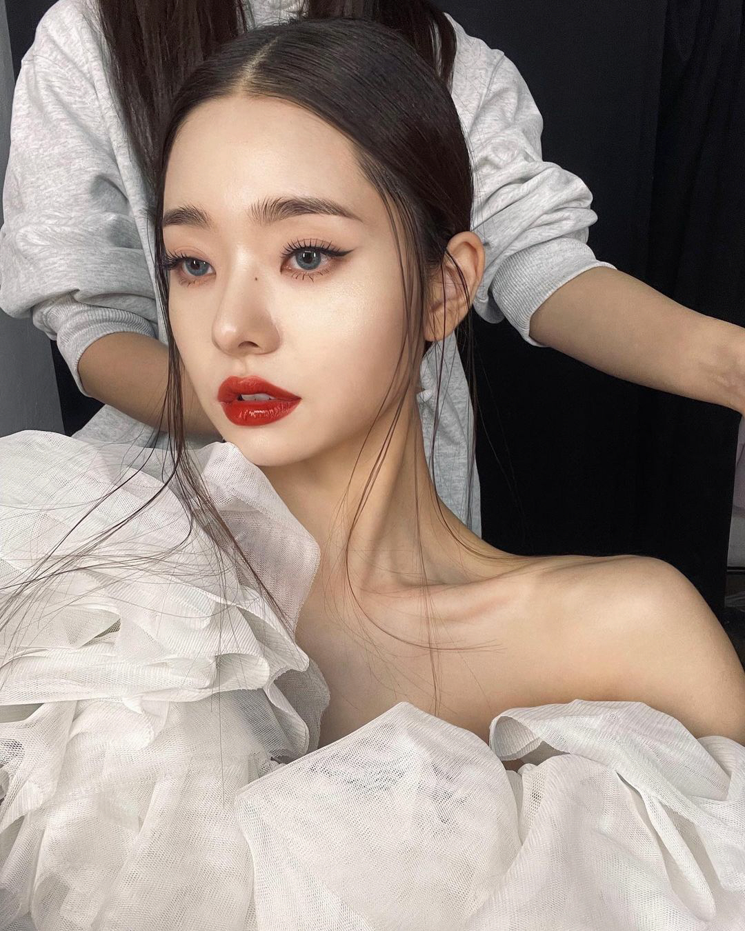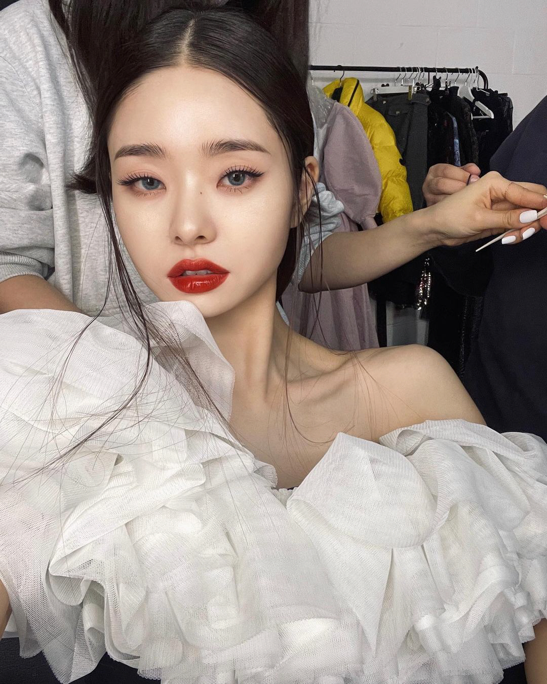 공개된 사진 속에는 메이크업 중인 송지아의 모습이 담겼다. 송지아는 도드라진 쇄골뼈가 그대로드러난 오프숄더 드레스를 입고 셀카를 찍었다. 도톰한 레드립은 나른한 듯 섹시한 미모를 배가시킨다. 대세 다운 송지아의 미모가 돋보인다.