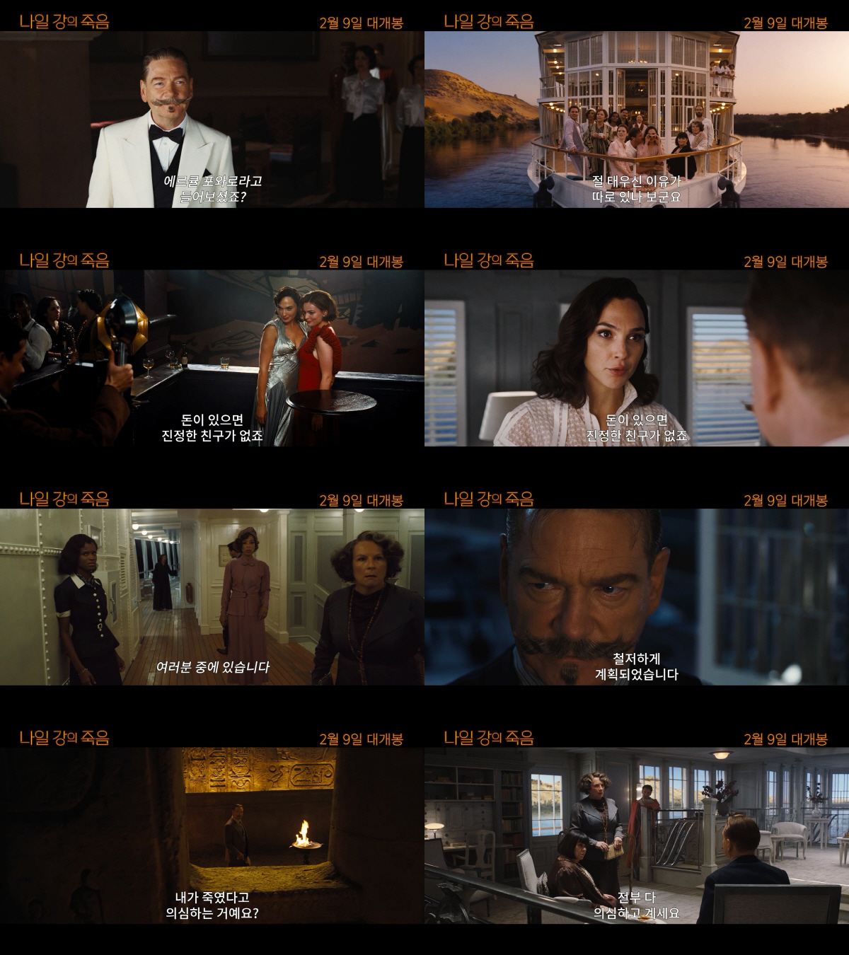영국의 소설가 에거서 크리스티의 경험담을 모티브로 지어진 동명 베스트셀러를 원작으로 한 '나일 강의 죽음'은 신혼부부를 태운 이집트 나일 강의 초호화 여객선에서 살인 사건이 벌어진 가운데, 탐정 에르큘 포와로가 조사에 착수하지만 연이은 살인 사건으로 탑승객 모두가 충격과 혼란에 휩싸이게 되는 이야기를 그린 작품이다. 케네스 브래너, 갤 가돗, 레티티아 라이트, 톰 베이트먼, 에마 매키, 아네트 베닝 등이 출연했고 '오리엔트 특급 살인'을 연출한 배우이자 감독 케네스 브래너 감독이 메가폰을 잡았다. 오는 2월 9일 국내 개봉한다.