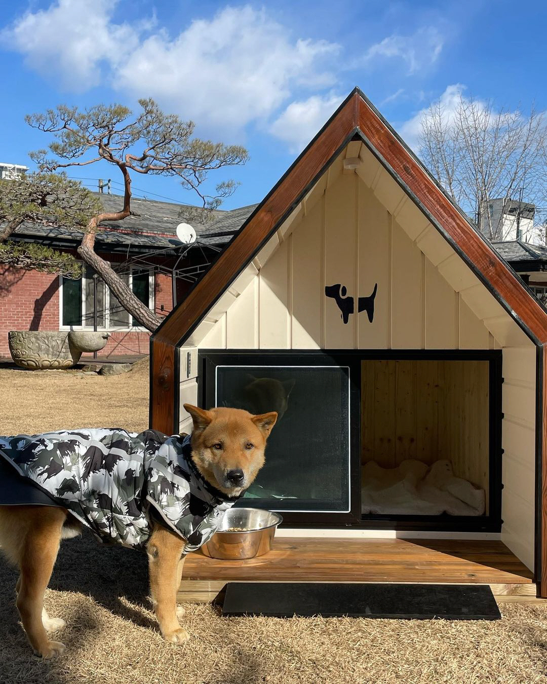 공개된 사진 속에는 박세리의 반려견 천둥이의 새집의 모습이 담겼다. 특히 원목으로 만든 새집은 조명도 있고 바닥에 난방까지 되는 리치한 집이었다.