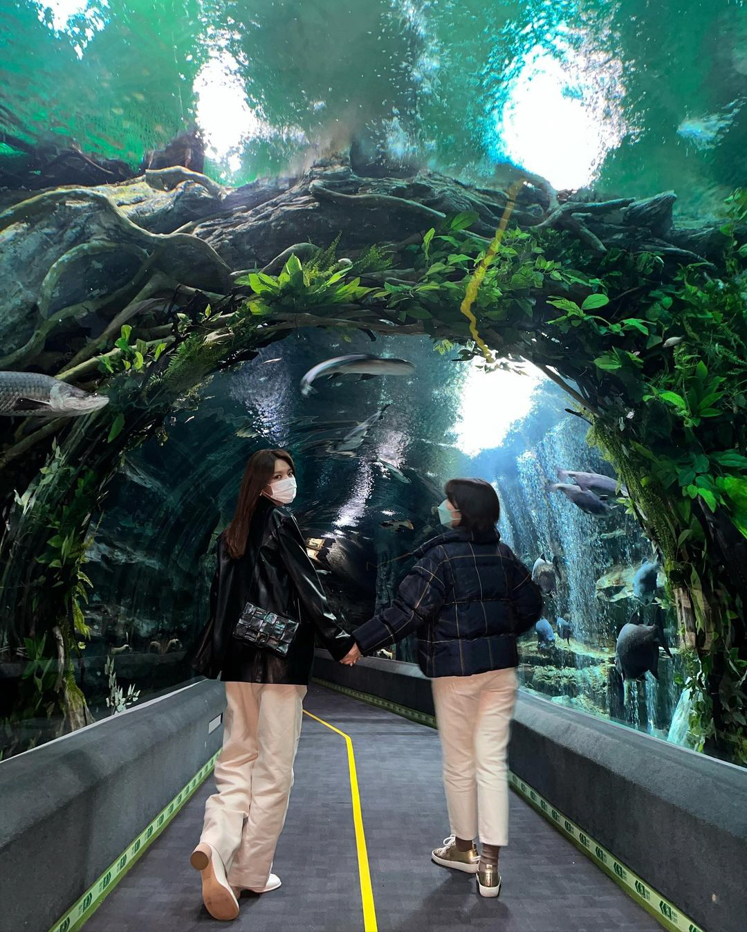 또한 커플룩을 맞춰 입고 아쿠아리움을 찾은 두 사람은 손을 꼭 잡는 등 다정한 포즈에서 서로를 향한 애정이 느껴졌다. 특히 이 과정에서 두 사람의 똑 닮은 비주얼 속 우월한 미모는 눈길을 단번에 집중시켰다.