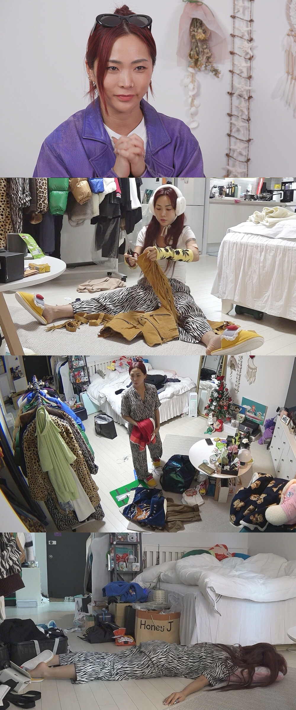 특히 허니제이는 붙박이 옷장에 행거에 침대 위까지 점령한 옷더미들 앞에서 맥을 못 췄다는 후문이다. 이때 무게를 이기지 못해 행거가 중심을 잃고 무너지려는 응급 상황이 발생, "안 돼! 무너지지 마! 나 너무 속상해"라는 허니제이의 애원을 과연 행거가 들어줬을지 궁금증을 자아낸다.