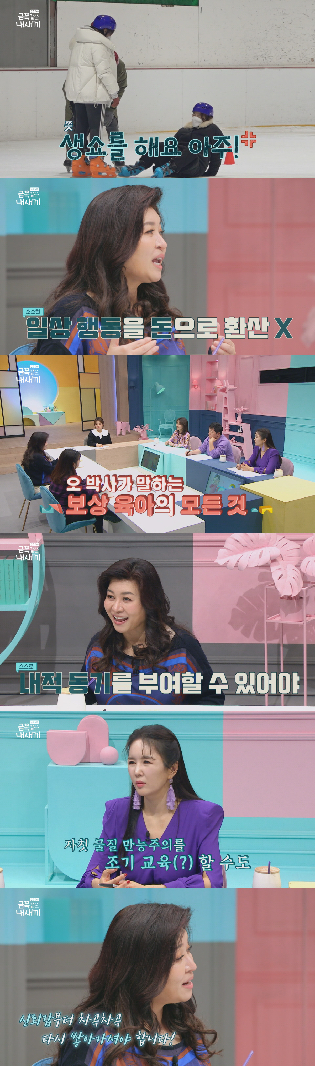 심각한 표정으로 상황을 지켜보던 오은영은 "일상의 모든 행동을 다 돈으로 환산하는 것은 좋지 않다"라며 "돈으로 보상 육아를 계속하게 된다면 스스로 내적 동기를 부여해 실행해 옮기는 경험을 하기 어렵다"라고 설명한다. 덧붙여 "금쪽이와 같이 사회성이 발달하는 중요한 시기에 이러한 보상 육아는 굉장히 문제가 될 수 있다"라고 말하며 엄마의 보상 육아를 지적한다.