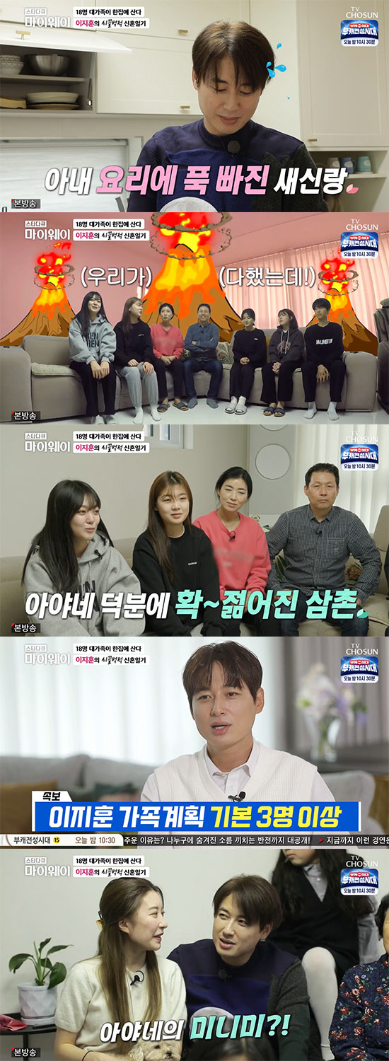 5층 건물에 18명 대가족이 함께 사는 이지훈 가족은 신년을 맞아 특별한 음식을 만들었다. 이지훈 가족의 전통대로, 층별로 음식을 준비하게 된 것. 이지훈은 아내와 음식을 준비하며 "혼자 있으면 외롭다. 하지만 저는 집에 들어오면 대화할 상대들이 있다. 총각 때는 항상 일주일에 한 번 정도는 매형이랑 누나랑 같이 소통하고 어려움도 나누고 그런 시간이 큰 도움이 됐다"라며 대가족이 함께 사는 좋은점을 이야기했다.