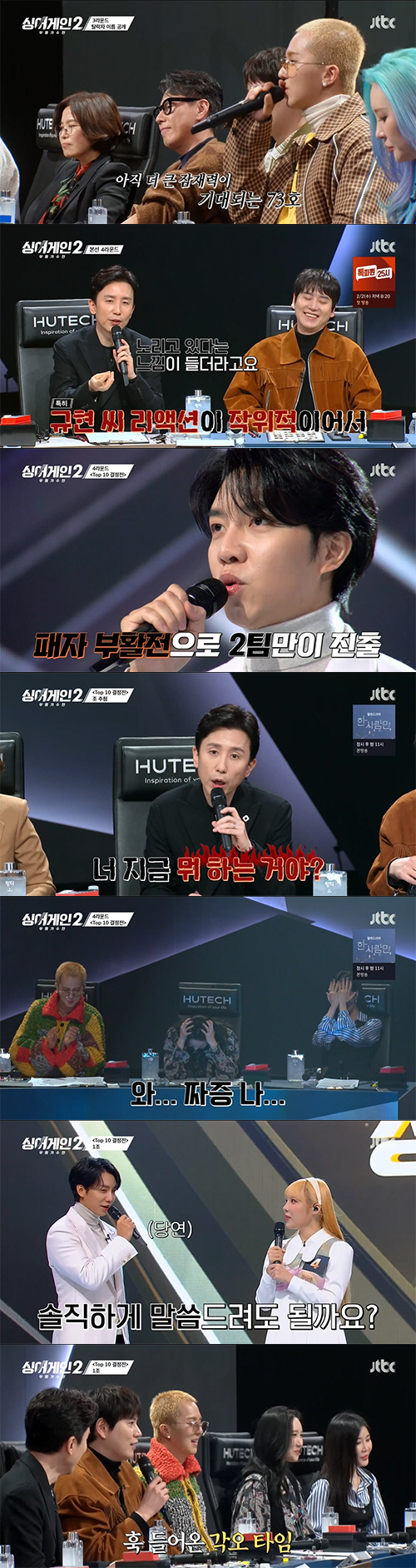 유희열은 피튀기는 조 선정에 이승기를 향해 "너 지금 뭐 하는 거야"라며 화를 내 웃음을 자아냈다.