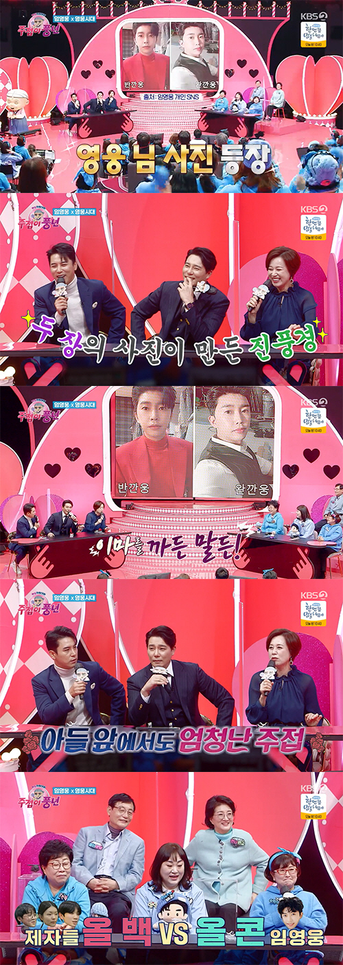 또 학원을 운영 중인 주접단은 '제자들 올백 vs 올 콘 임영웅'이라는 선택에 망설임 없이 임영웅을 선택하는 모습을 보여 웃음을 자아냈다.