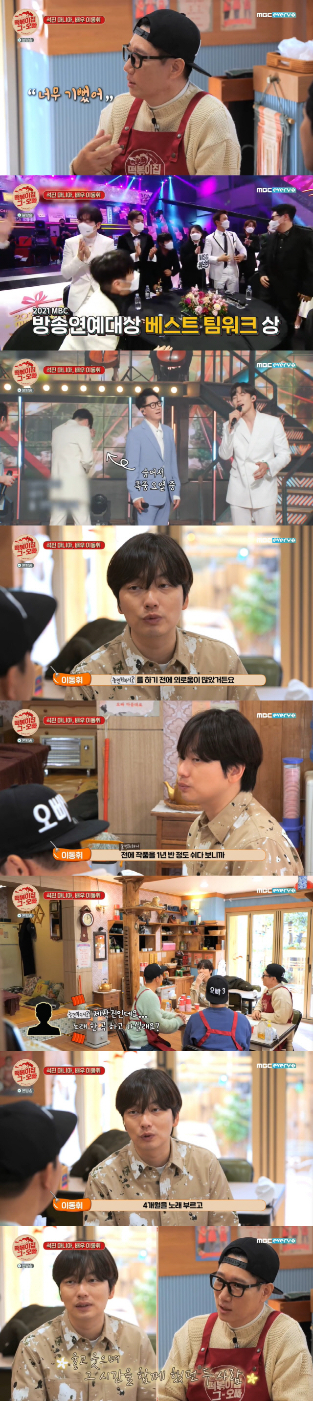 이동휘는 "나도 많이 울었다"면서 "'놀면 뭐하니?' 하기 전에 외로움이 많았다. 사람은 누구나 외롭지 않냐"고 했다. 이어 그는 "작품을 1년 반정도 쉬었다. 1년 만 동안 아무런 활동을 안 했다. 좋은 작품을 하고 싶어서 기다리다 보니까 시간이 흘렀더라"고 했다.