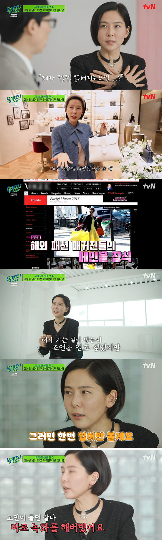 이후 패션계에 입지가 높아진 김나영은 스스로 문을 두드려 모델이 되기도 했다고. 하지만 "안좋은 시선도 있었다. 조언도 듣고 싶고 확인하고 싶은 마음도 많았는데 물어볼 사람이 없었다. 그래서 앞 만 보고 갔다"라고 이야기했다.