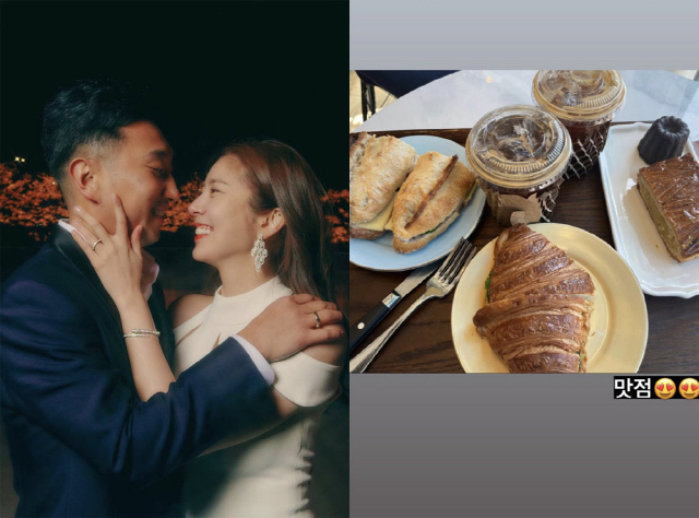 이어 함께 공개한 사진에는 카페 데이트 인증샷이 담겨있다. 탁자에는 커피, 빵 포크 등 두 개씩 짝을 맞추고 있다. 결혼을 앞둔 예비부부의 달콤한 일상이 훈훈함을 안긴다.