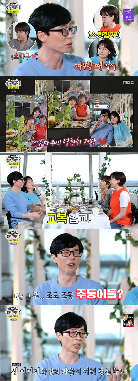 2일 방송되는 MBC 예능 '놀면 뭐하니?'에서는 51살 막내 유재석과 '코미디계 전설의 누나들' 이경실, 박미선, 조혜련이 함께하는 '누나랑 나' 특집이 이어졌다.