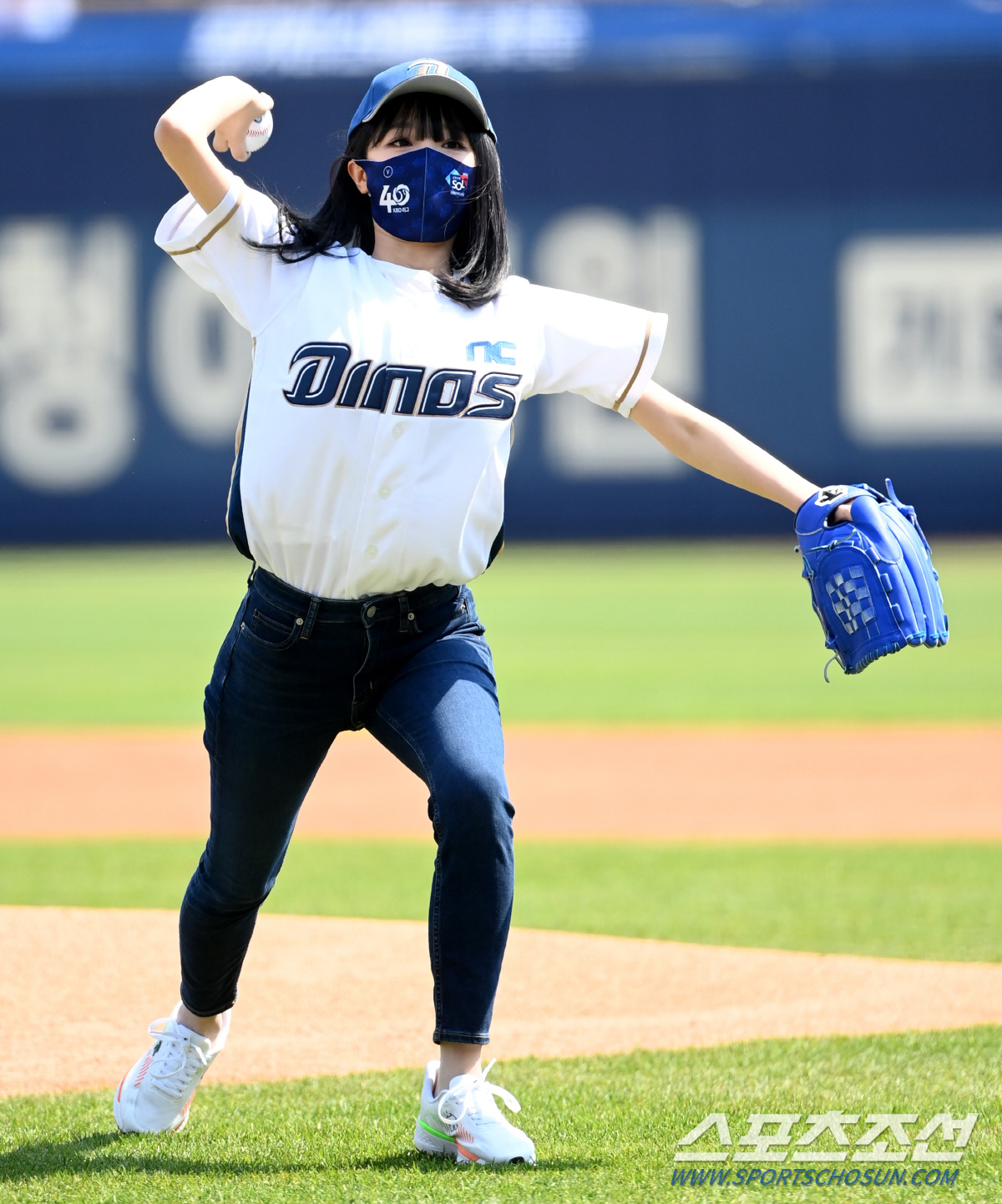 NC 다이노스의 유니폼 상의와 진한 색의 청바지, 운동화의 단정한 옷차림으로 그라운드에 나선 최예나는 깜찍한 투구폼으로 공을 던져 많은 야구팬들의 박수를 받았다.