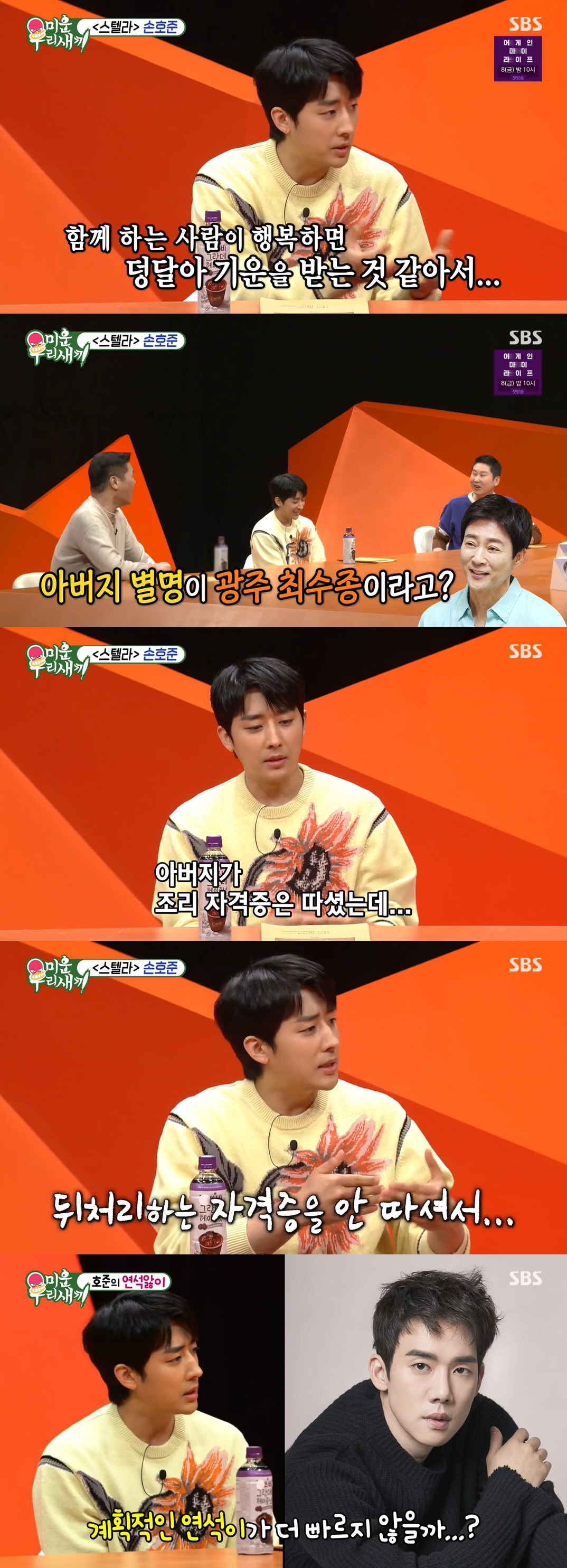 또한 손호준은 소문난 '사랑꾼 아버지'에 대한 이야기도 털어놨다. 일명 '광주 최수종'으로 불린다는 아버지는 어머니를 위해 조리사 자격증까지 취득했다는 후문.