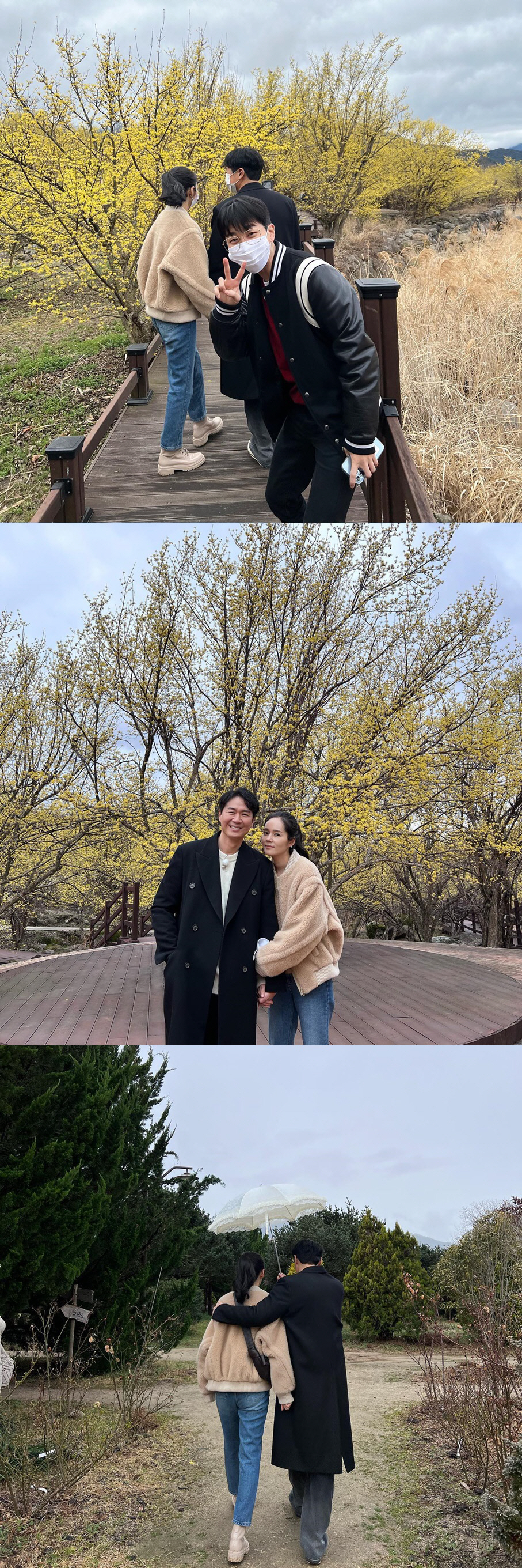 이와 함께 딘딘이 공개한 사진에는 연정훈과 한가인의 투샷이 담겨있다. 두 사람은 팔짱을 꼭 낀 다정한 포즈를 취하는가 하면, 연정훈이 한가인에게 양산을 씌워 주는 등 세상 달달한 모습이다. 특히 남편이 출연 중인 프로그램에 초특급 게스트로 출연한 한가인은 절세미녀 다운 독보적인 미모를 자랑해 감탄을 자아낸다.