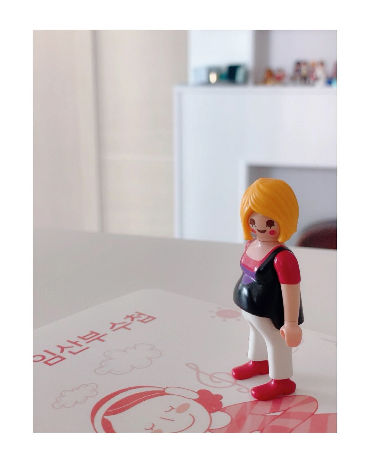 사진 속에는 임산부 수첩과 함께 배가 볼록 나온 피규어가 놓여져 있다. 현재 임신 중인 김영희는 "배가 조금씩 나온다"면서 임신 후 몸의 변화를 적었다. 이어 그는 "기존에 두둑한 배를 충분히 가지고 있었으나 다르다!"면서 "기존 배와 다르다"고 덧붙여 웃음을 안겼다.