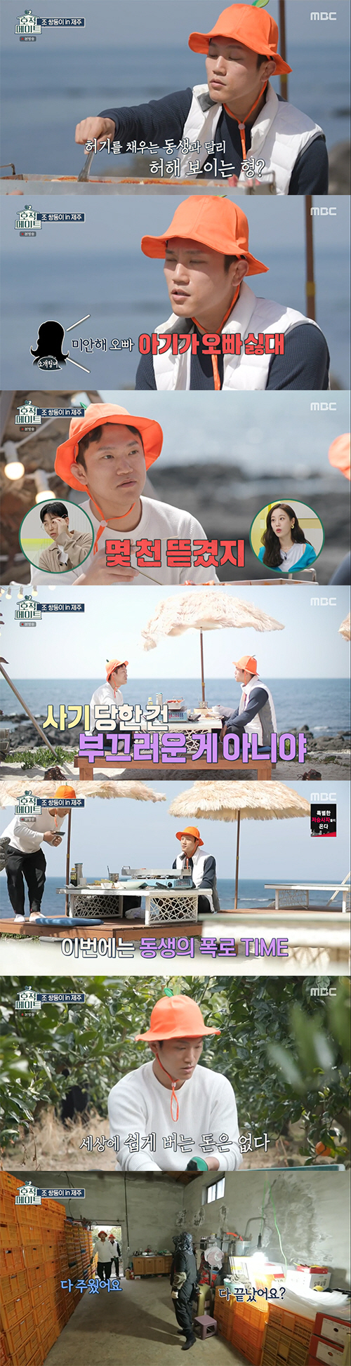 두 사람의 할 일은 바닥에 떨어진 썩은 귤을 한 곳으로 모으는 일이었고, 사장님은 "떨어진 귤을 먹지마라. 나중에 맛있는 거 줄거다. 땅에 떨어진 걸 먹는 건 땅거지다"라고 말해 웃음을 자아냈다.
