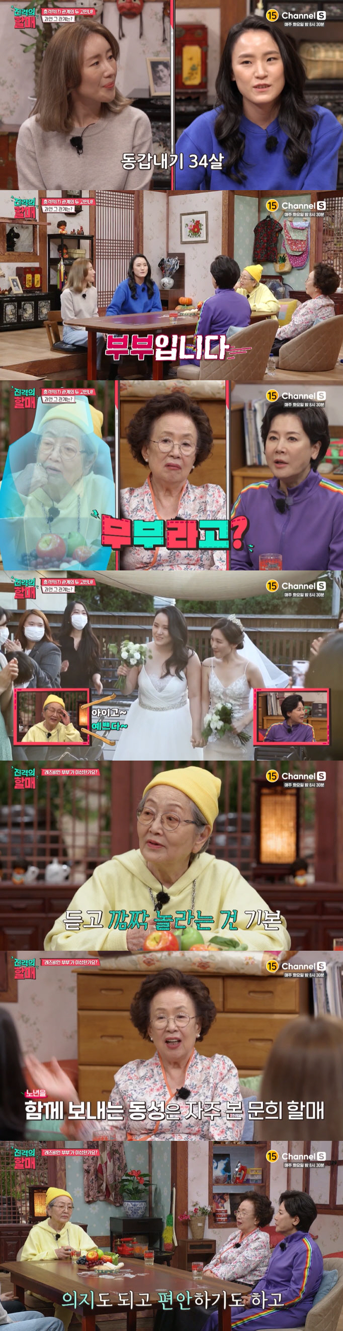 이어 결혼 2년 차로 신혼을 즐기고 있는 레즈비언 부부가 등장했다. 할매들은 태연한 척했지만, '동공 지진'을 보였다. 레즈비언 부부 사연자는 "저희가 부부라고 말씀드렸을 때 할머님들이 당황해하시는 게 보였다. 아내가 둘인 레즈비언 부부가 많이 이상한가요?"라며 고민을 전했다.