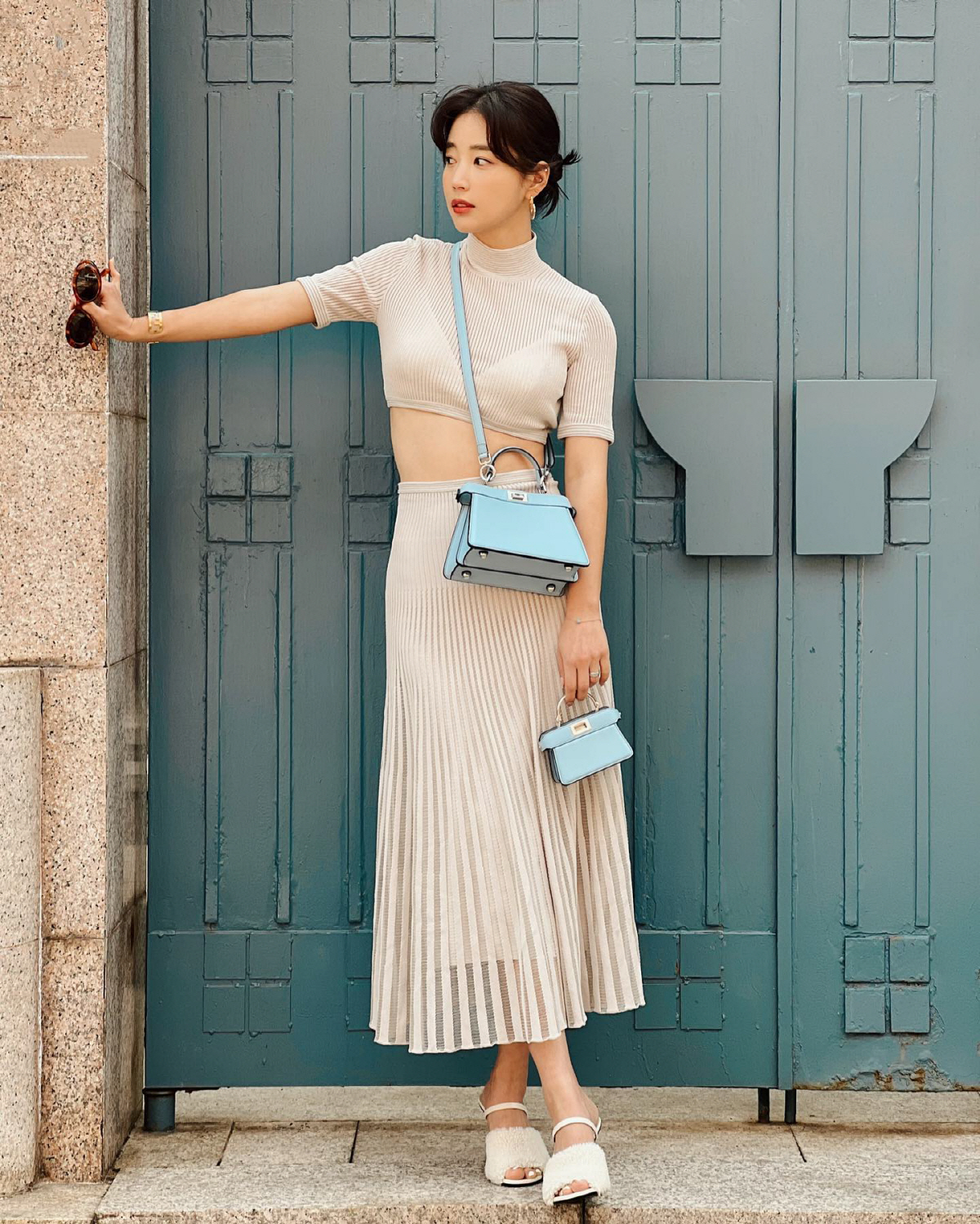 상의는 기장이 짧은 스타일인 크롭톱으로, 기은세의 탄탄한 복근이 그대로 드러나 시선을 사로잡는다. 그의 우아하고 아름다운 비주얼과 찰떡 스타일링을 자랑, 감탄을 자아내는 중이다.