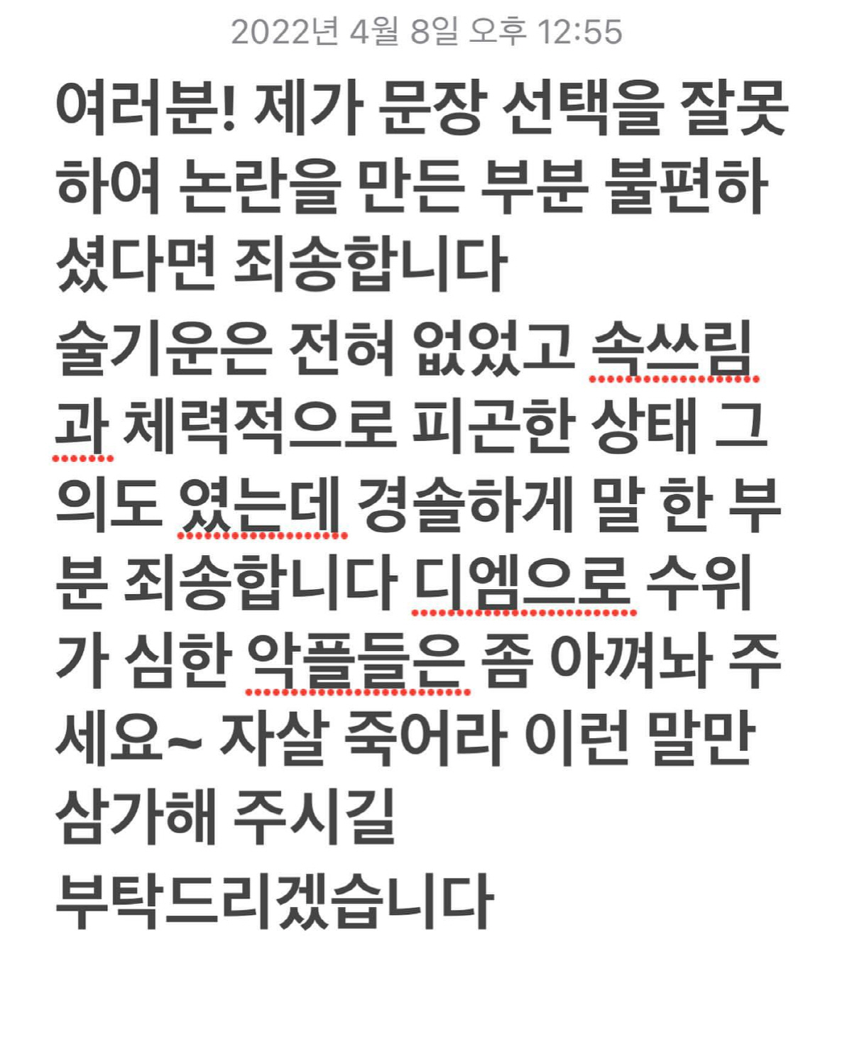 하지만 이후에도 이수민의 경솔한 행동에 대한 지적이 이어졌고, 결국 이수민은 반성의 뜻을 담은 사과문을 올린 것.